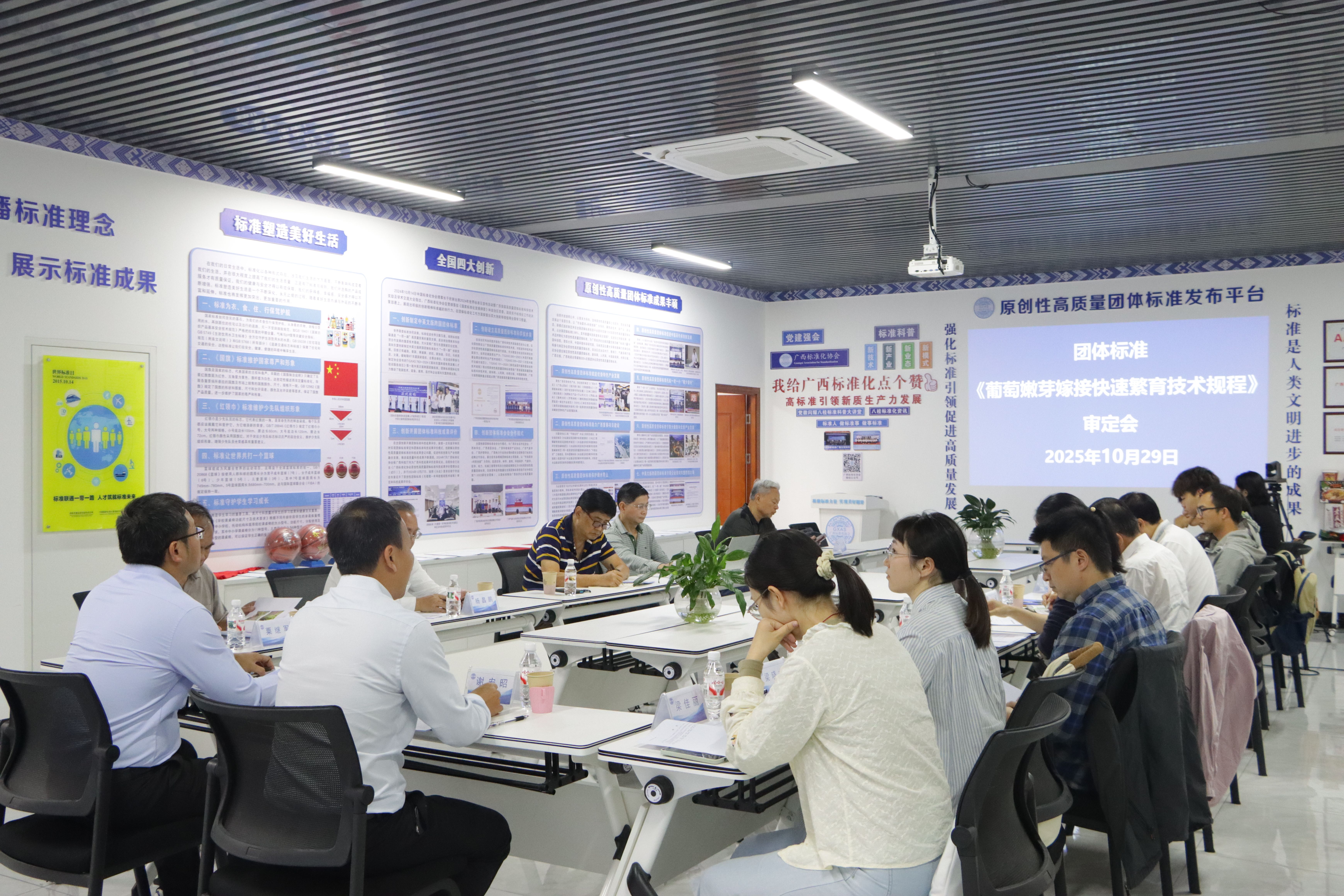 广西标准化协会会长谢宏昭高级工程师、秘书长黄林华高级工程师,广西壮族自治区农业科学院白先进研究员、曹雄军副研究员,bwin官网王博副教授、杨德龙、梁佳丽、赵梓琪,广西特色作物研究院梁晓文农艺师,广西真诚农业有限公司总经理白扬农艺师、陆丽农艺师、廖永峰助理农艺师,广西标准化协会标准部主任苏子华及编制工作组其他成员参加了此次团体标准审定会。